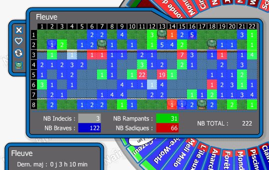 Nan serieusement, je comprends pas le choix de cette map pour cette opération, vu que le front évolue vers le bas pour les sadiques, dans 10 jours votre map sera sadique, donc a koi bon faire des tours ? A la rigueur si vous vous enfonciez en territoire brave je comprendrais, mais là ... |